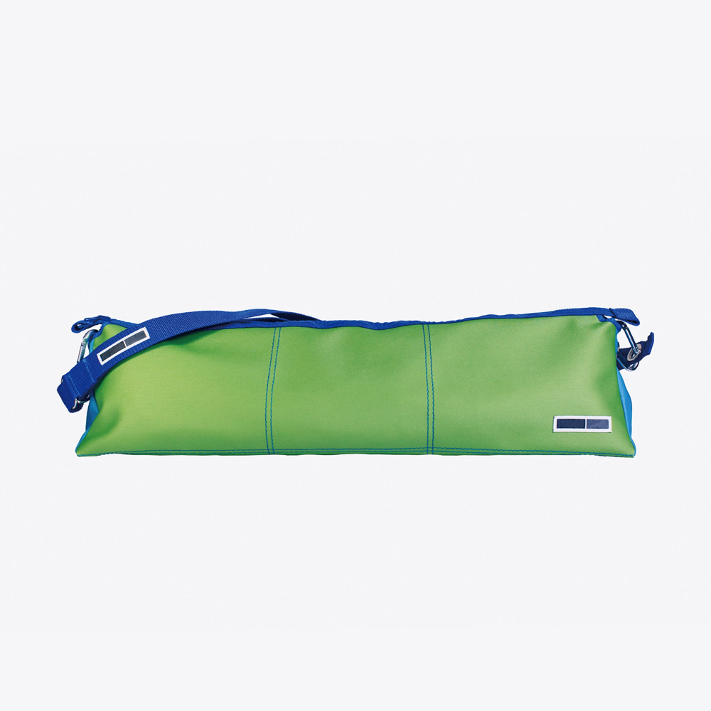 Detachable strap included. Nickel grommet & aluminum carabiners.