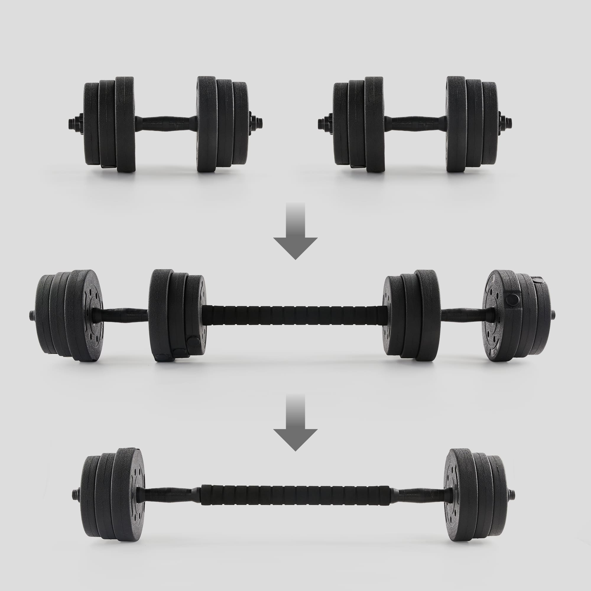 One locking bar to connect the handles and create a barbell, expanding your workout options.