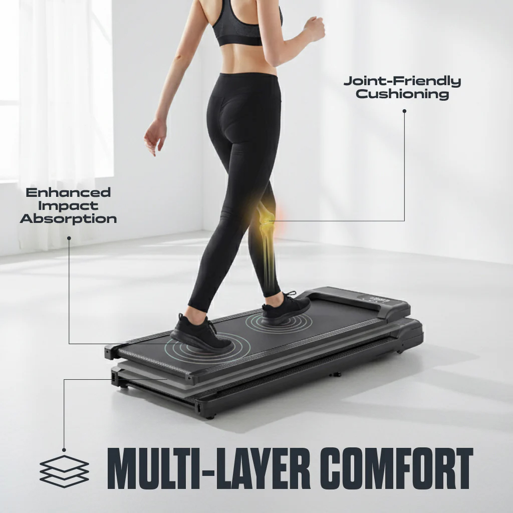 With a slim profile and quiet motor, it’s ideal for walking while working, winding down in the evening, or staying active indoors. The walking surface offers stable support, and speeds range up to 6 km/h for light cardio or recovery sessions.