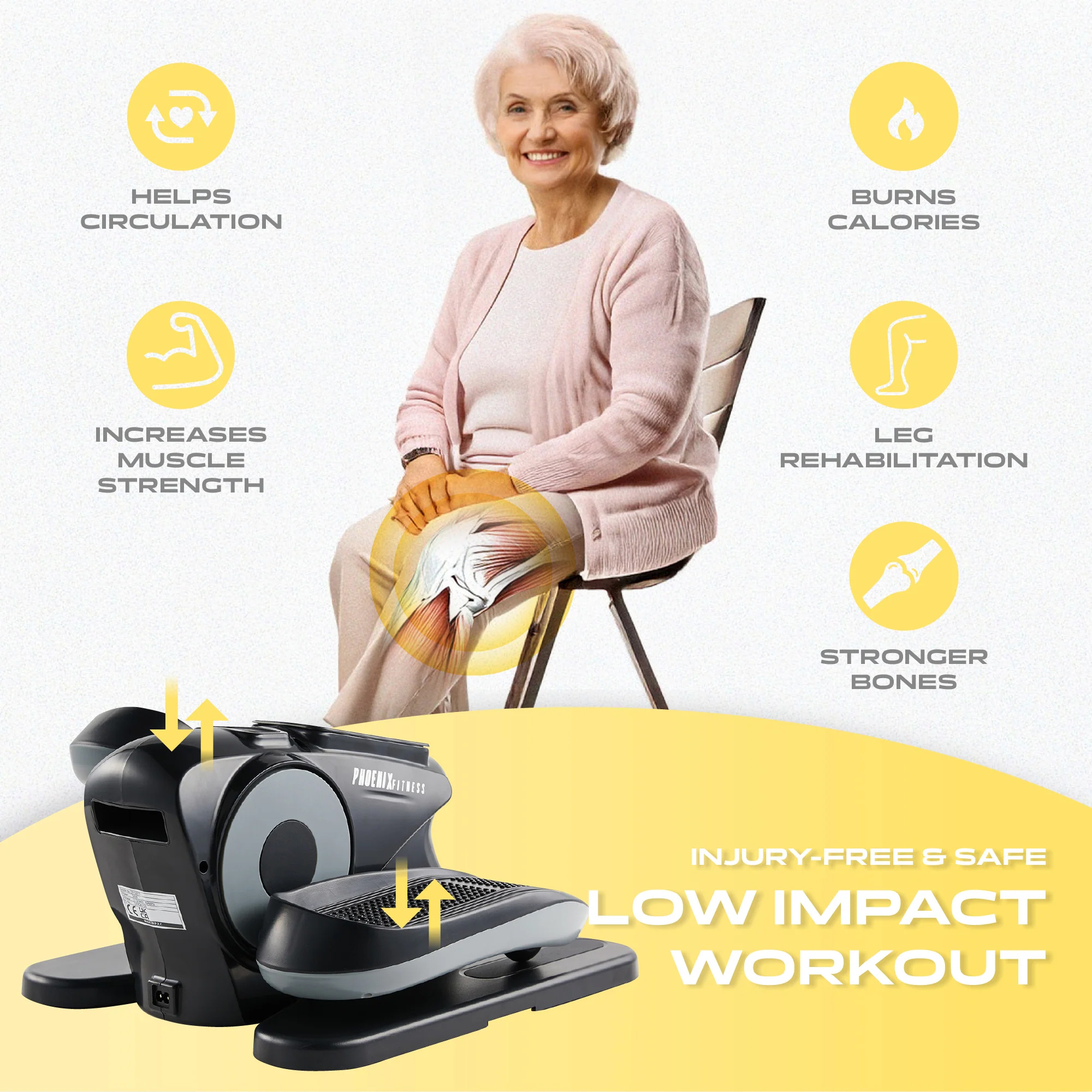 Featuring detachable foot straps and textured, gripped pedals for extra stability, this seated elliptical machine is perfect for all ages. The non-slip pedals ensure a secure and comfortable workout, while the smooth, low-impact motion is gentle on the knees and ankles—ideal for home workouts, rehabilitation, and maintaining mobility.