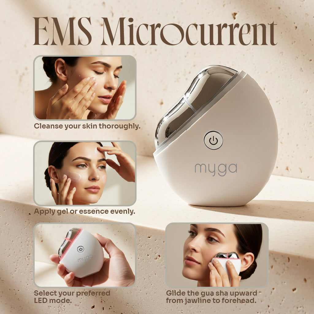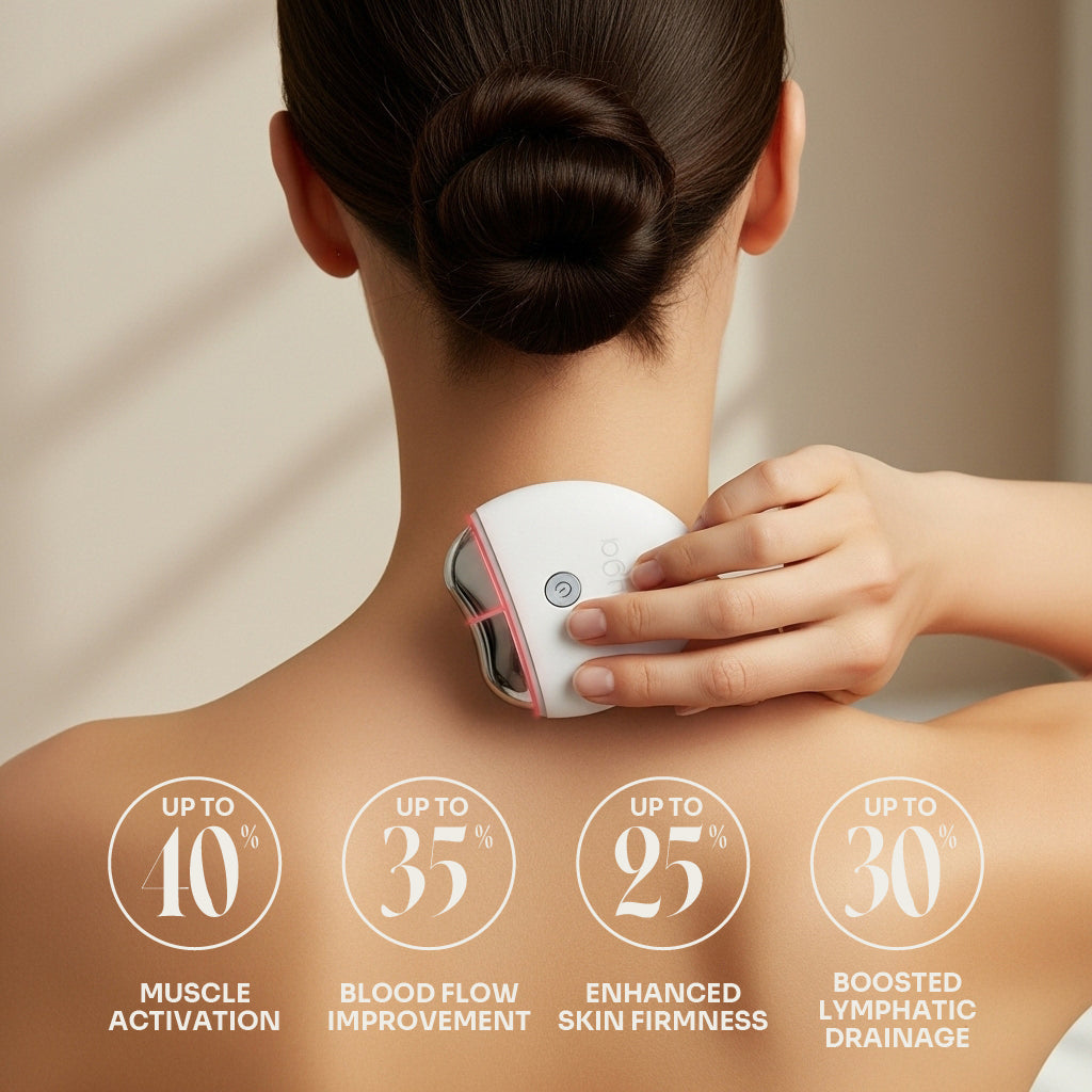 The EMS Glow Sculptor is your all-in-one beauty ritual in the palm of your hand. Designed to sculpt, tone, and rejuvenate, this compact tool combines the power of EMS (Electrical Muscle Stimulation), soothing vibration, gentle heat, and tri-colour LED light therapy. Inspired by traditional gua sha techniques, it helps lift the skin, promote better circulation, and support product absorption for a radiant, glowing complexion.