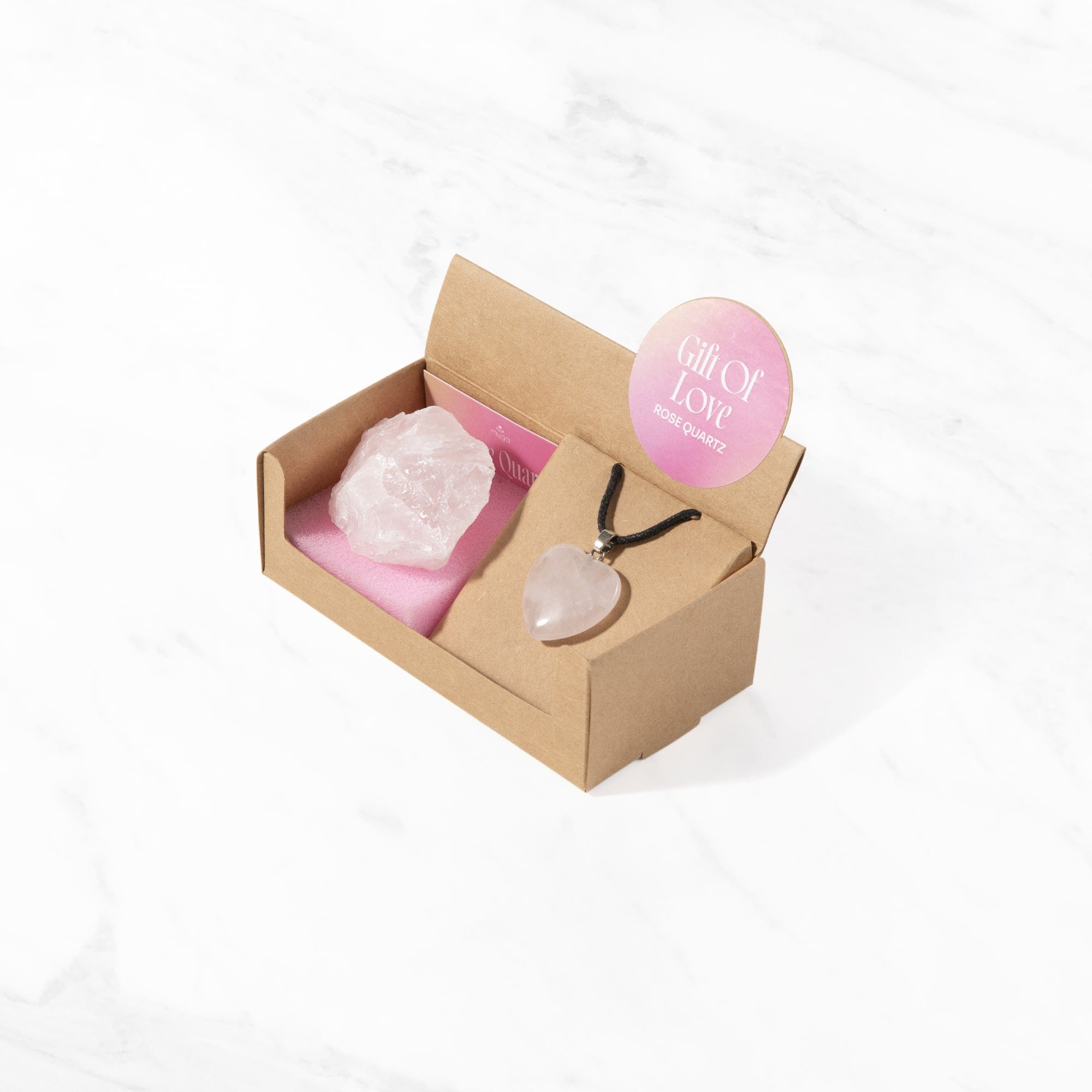 Rose Quartz Set: Includes a heart pendant and a natural stone.